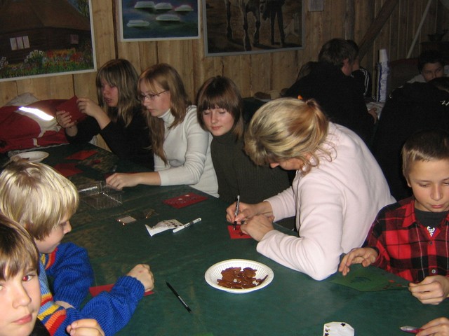 KL Harju maleva kodutütred ja noorkotkad jõulupeol 2006. aasta detsembris. Õnnitluskaartide valmistamine.