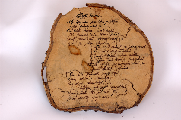 NKK Keskjuhatuse poolt KL Rapla malevale kingitud kasepuust plaat, millele on graveeritud Eesti hümni sõnad.