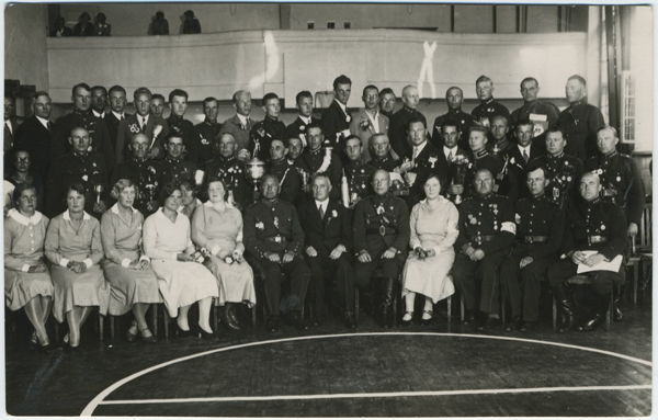 Naiskodukaitsjad ja kaitseliitlased KL Tallinna maleva võimlas, 1930. aastad.