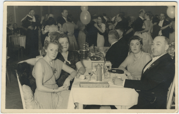 NKK Talinna ringkonna esinaine Alma Jeets koos perekonnaga mulgi õhtul Estonia teatri restoranis veebruaris 1939.