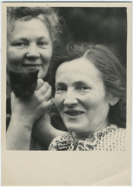 NKK Tallinna ringkonna esinaine Alma Jeets koos õe Selma Kiivega pärast naasmist Siberist asumiselt Riisiperes Nissis 1950. aastail.