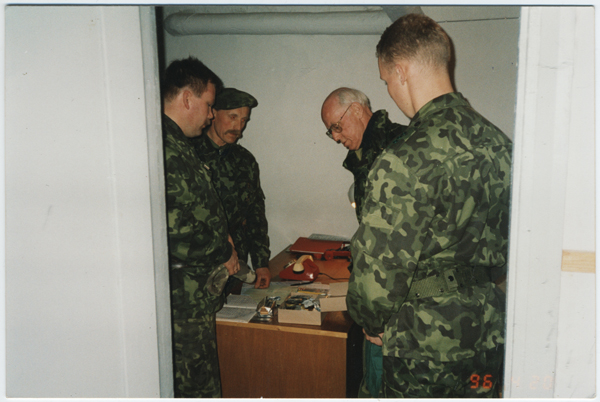 Eesti Vabariigi president Lennart Meri ja KL ülem kolonel Johannes Kert külastamas üht Kaitseliidu malevat (KL Harju malev Sauel?) 20. aprillil 1996. aastal.
