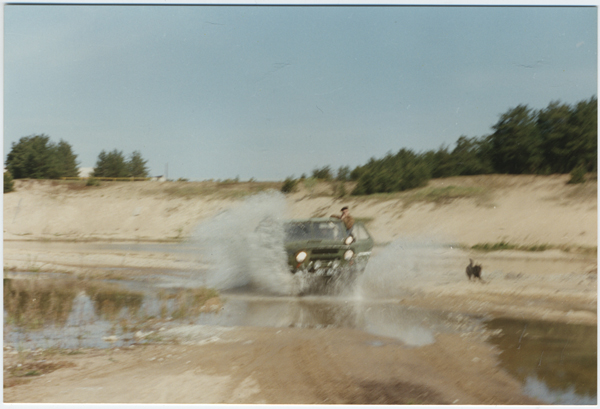 KL Tallinna maleva kaitseliitlased Sten ja René Allik Männiku karjääris maastikuautoga sõitmas, 1990. aastad.