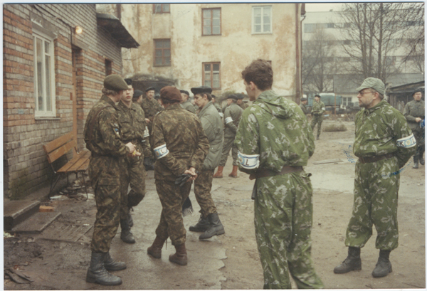 KL Tallinna maleva kaitseliitlased Keskturu reidi eel 1992. aastal: Tõnu Järv, Lauri Pääslane, Eduard Nikkari, Endel Vestli, Toivo Nellis, Andrus Saks ja Vallo ??.