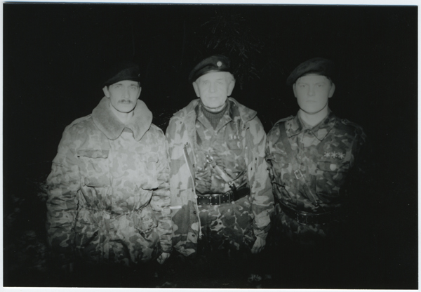 KL malevapealike ja instruktorite õppepäevad Aegviidus KIT spordibaasis 17.-18.oktoobril 1992. Vasakult: Hillar Tint KL Tallinna malevast, Arne Kukk KL Peastaabist ja Rein Luhaorg KL Tallinna malevast.