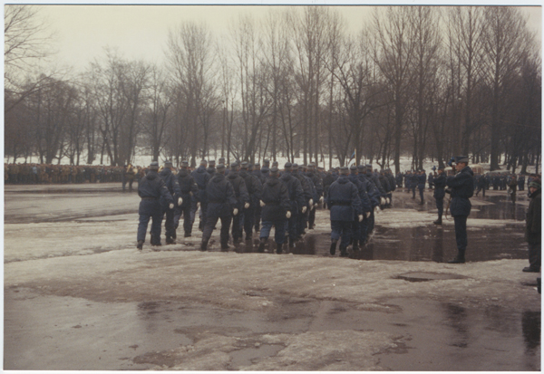 Eesti Vabariigi aastapäeva paraadi proovil 1992. aastal Kadrioru staadioni juures: Kodukaitse esindus.