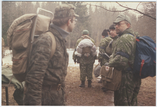 KL Tallinna maleva esimene sissilaager Tallinna lähedal Sookaeral märtsis 1992 (vasakult): Eduard Nikkari ja Vallo ???.