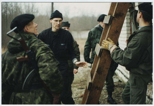 KL Tallinna maleva korraldatud Linnavõitluse õppus endises Vene armee piirivalve koolituslinnakus Paldiskis märtsis 1995. aastal keskel Soome instruktor Matti Ojasilta (Luomansuu).
