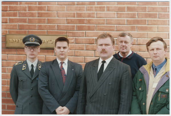 Kaitseliidu ülem major Johannes Kert ja 40 KL esindajat külaskäigul Soomes Helsingi Õhutõrjerügemendis (Ilmantorjuntarykmennti) Hyryläs 22.-24. aprillil 1994. Vasakult: ??, Jukka I. Mattila, KL ülem major Johannes Kert, KL ülema nõunik kolonelleitnant Lauri Väätänen ja Albert Helme.