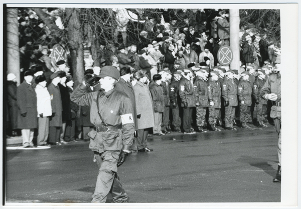 Esimene Eesti kaitseväe paraad taasiseseisvunud Eestis 24. veebruaril 1992. (Prantsuse vormid) KL Rapla maleva pealik Rein Pajunurm (?)