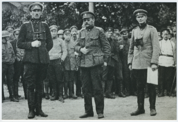 Soomusrongide divisjoni ülem kapten Karl Parts, 3. diviisi ülem kindralmajor Ernst-Johannes Põdder ja 3. diviisi staabiülem alampolkovnik Nikolai Reek vaherahu sõlmimise päeval 3. juulil 1919 Strazdumuižas Riia lähedal.