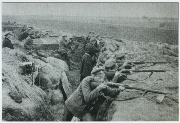 Eesti kaitseväelased kaitsekraavis Vabadussõja ajal 1919. aastal.