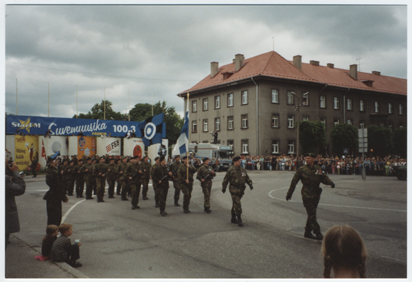 Võidupüha paraad Pärnus 2001. aastal. Soome reservistide rühma juhib kolonelleitnant Jukka Hyle.