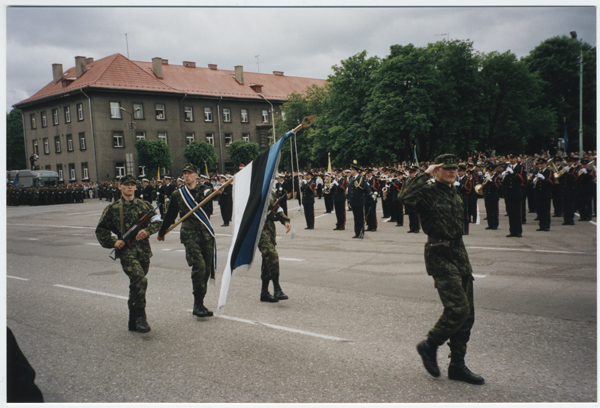 Võidupüha paraad Pärnus 2001. aastal: Eesti Vabariigi lipu toimkonnas on KL Pärnumaa maleva kaitseliitlased.
