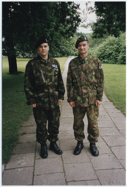 Võidupüha paraad Pärnus 2001. aastal. Soome reservistid-instruktorid Jukka I. Mattila ja Martti Vakkala.
