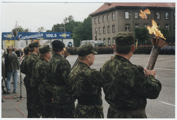 Tuletoojad Võidupüha paraadil Pärnus 2001. aastal: musta baretiga KL Tallinna maleva tuletooja lipnik Andres Viks.