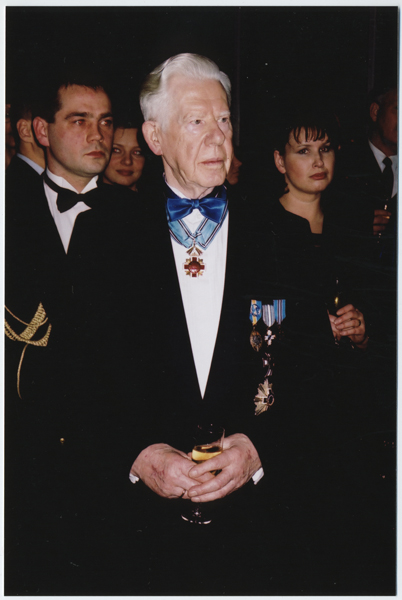 KL Tallinna maleva aastapäeva tähistamine Lillepaviljonis 2000. aastal (vasakult): staabiveebel Peeter Land, Eldur Velliste Rootsist ja Naiskodukaitse aseesinaine Merle Sikka.