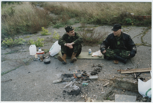 KL Tallinna maleva korraldatud Linnavõitluse kursus Türisalus endises nõukogude raketibaasis 2001. aastal: Soome instruktorid Martti Vakkala ja Matti Luomasuu.
