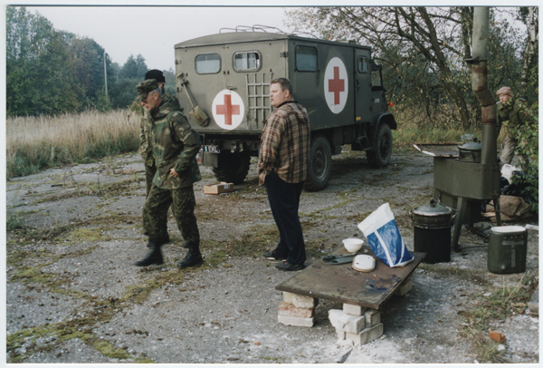 KL Tallinna maleva korraldatud Linnavõitluse kursus Türisalus endises nõukogude raketibaasis 2001. aastal (vasakult): veebel Raik Kuusemets ja leitnant Rein Luhaorg.