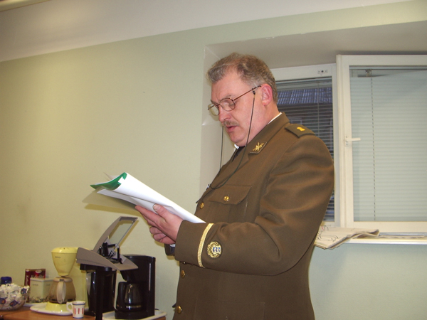 KL Tartu maleva esindajatekogu koosolek 2006(?). aastal. Sõnavõtuga esineb tagalapealik leitnant Uno Kübar.