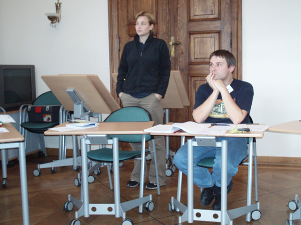 Õppetöö KL Koolis. Vasakult: instruktor Evelin Verš ja Tamme malevkonna pealik Tarmo Pihlik.