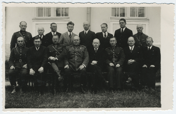 KL Petseri maleva esindajate kogu 1937. aastal. Esireas vasakult: ???, ??, maleva majanduspealik Kaarel Randur, malevapealik kolonelleitnant Hugo Ploomipuu, malevapealiku abi Nikolai Grünthal, maleva vaneminstruktor kapten Osvald Ilves, Noorte Kotkaste Petseri maleva pealik Artur Varul, Petseri malevkonna pealik leitnant Paul Listakind; teine rida: Raskekuulipildujate üksikrühma pealik August Kull, ??, ??, ??, ??; ??, Õhukaitse klp ja side üksikrühma pealik Johan Helleste ja Laura laskurkompanii pealiku abi Peeter Labidas.